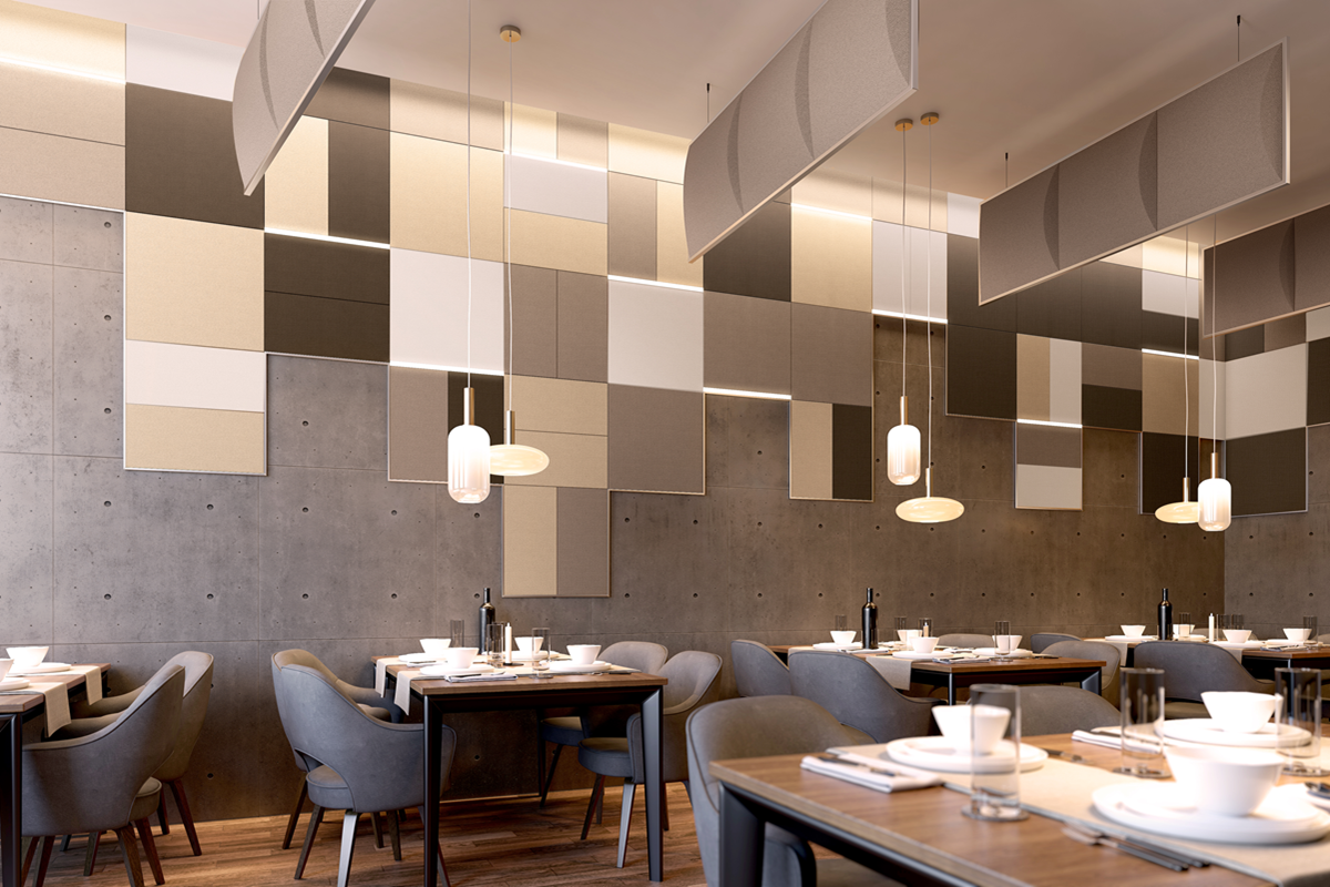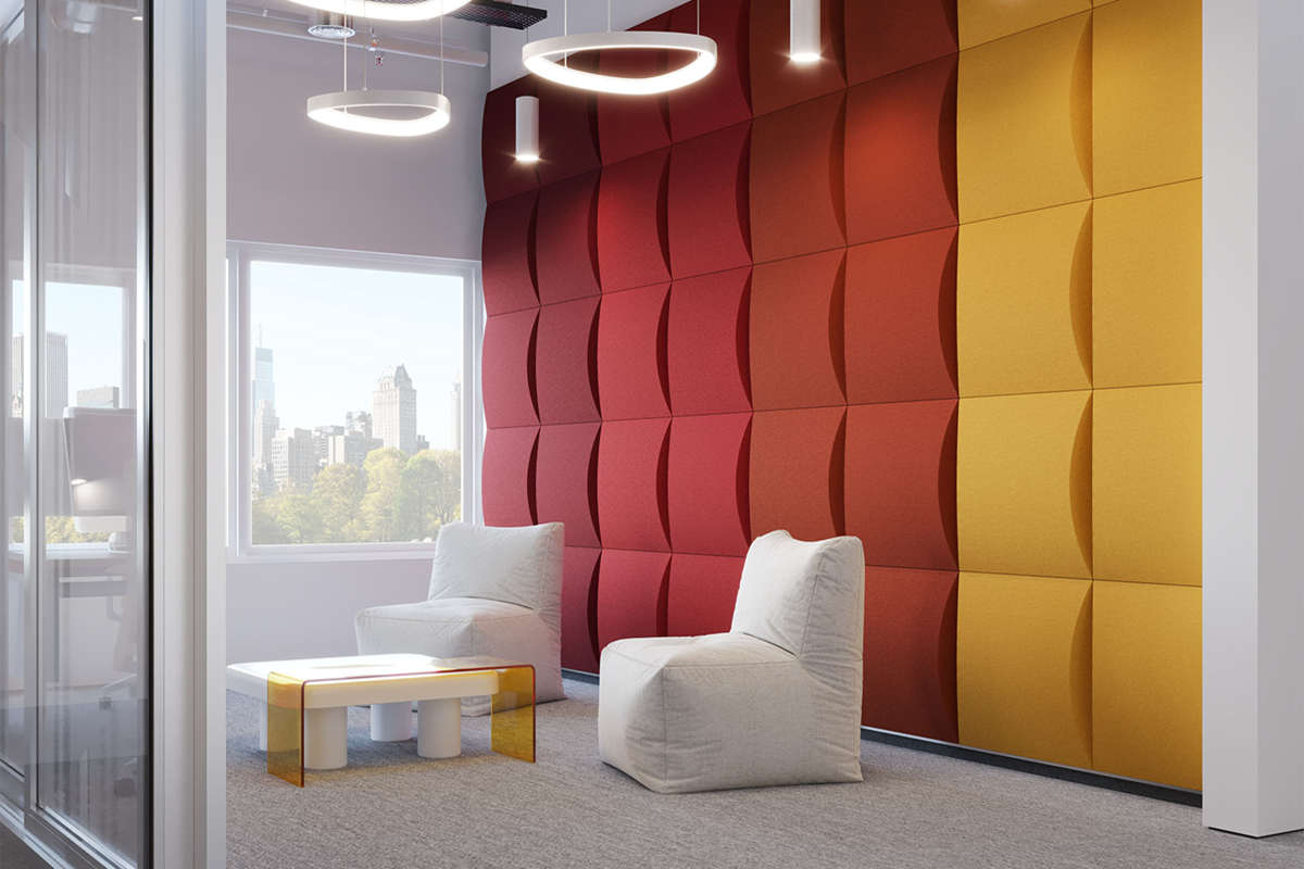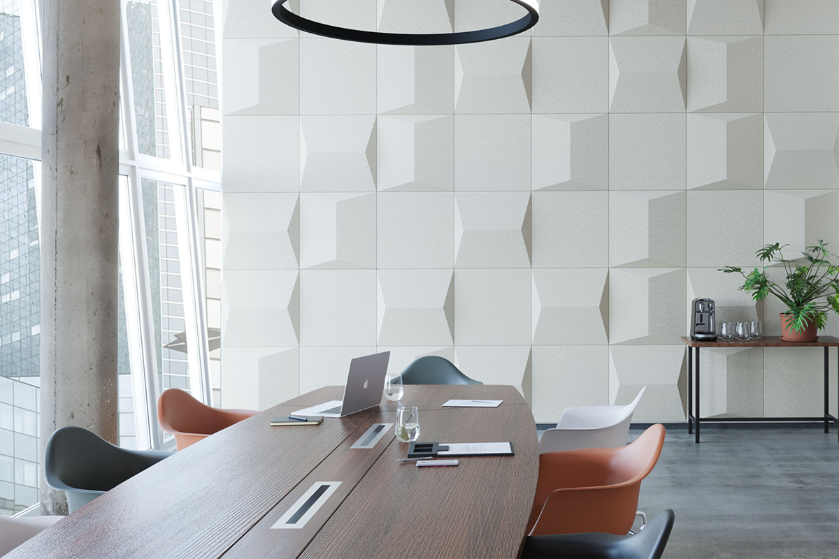 Available in a wide variety of shapes, colors, and textures, they help create unique environments where aesthetic appeal meets acoustic performance — an ideal solution combining sound comfort, efficiency, and environmental responsibility.
