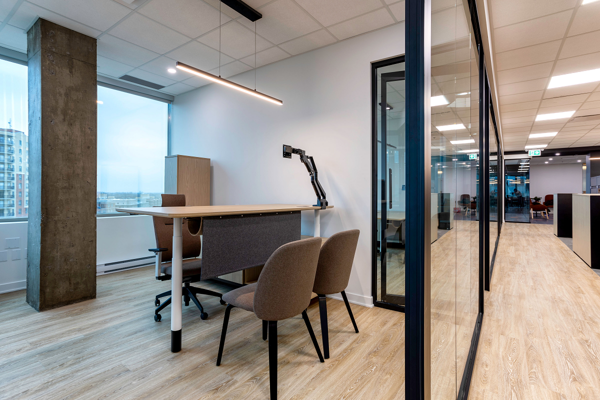 Groupe Lacasse: Quorum conference table, Stad credenza, custom furniture for the stationary section, metal filing cabinets